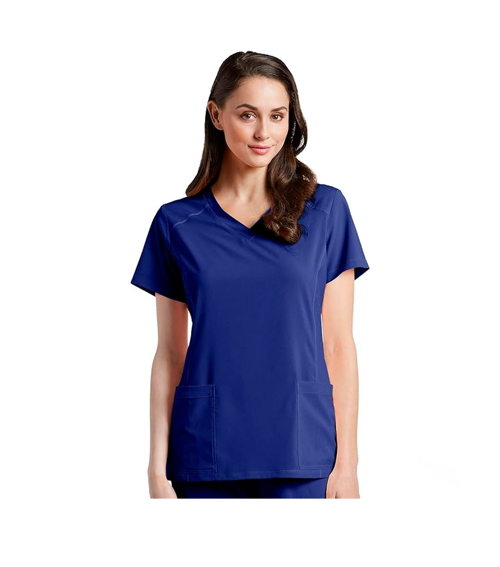 Notre haut d'uniforme pour femmes FIT est doté d'un tissu super extensible pour un maximum de confort et de flexibilité. Son tissu antimicrobien à séchage rapide évacue l’humidité vers la surface et contrôle les odeurs. Vous restez donc bien au sec pendant vos quarts de travail. Ce haut à encolure en V offre une coupe ajustée et possède un dos nageur en tricot maillé pour la ventilation. Les fentes latérales facilitent les mouvements et les coutures princesse soulignent votre silhouette.