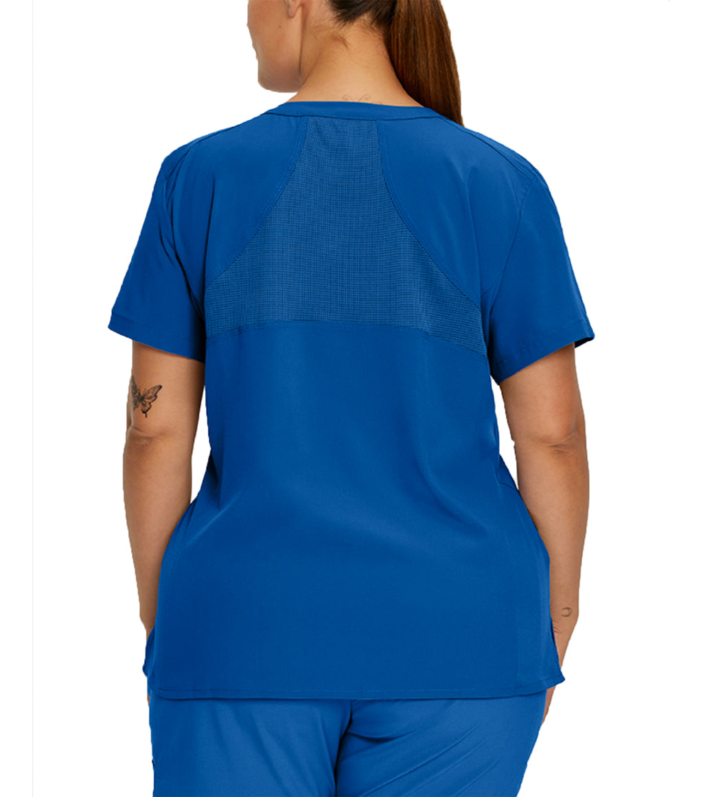 Notre haut d'uniforme pour femmes FIT est doté d'un tissu super extensible pour un maximum de confort et de flexibilité. Son tissu antimicrobien à séchage rapide évacue l’humidité vers la surface et contrôle les odeurs. Vous restez donc bien au sec pendant vos quarts de travail. Ce haut à encolure en V offre une coupe ajustée et possède un dos nageur en tricot maillé pour la ventilation. Les fentes latérales facilitent les mouvements et les coutures princesse soulignent votre silhouette.